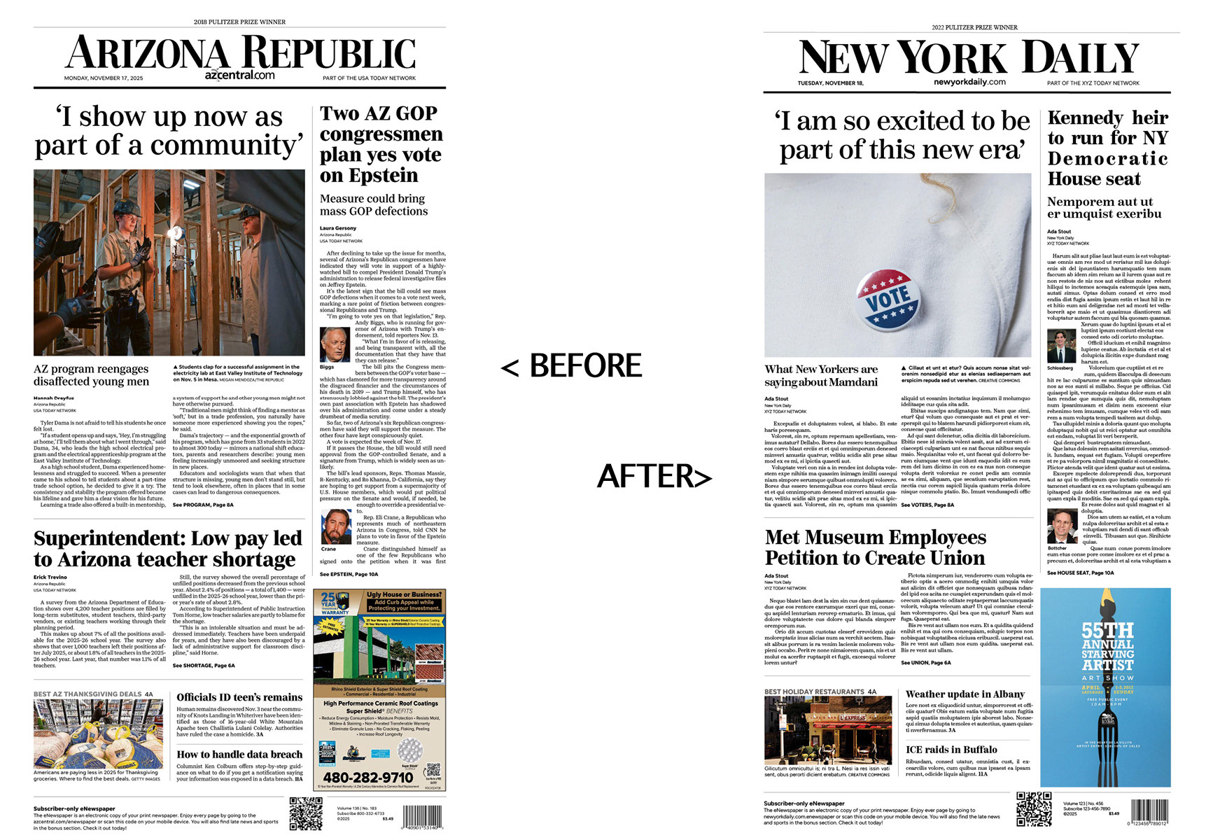 Despite the technical hurdles, the project was incredibly rewarding. Sourcing new images and writing fresh headlines allowed me to bring creativity into a rigid structure, and watching the clone come together highlighted how much precision shapes the clarity and readability of print design. By the end, I gained a stronger appreciation for the craft behind newspaper production and more confidence navigating InDesign’s typographic tools. The final result closely mirrored the original front page and reinforced the value of consistency, accuracy, and thoughtful visual organization.