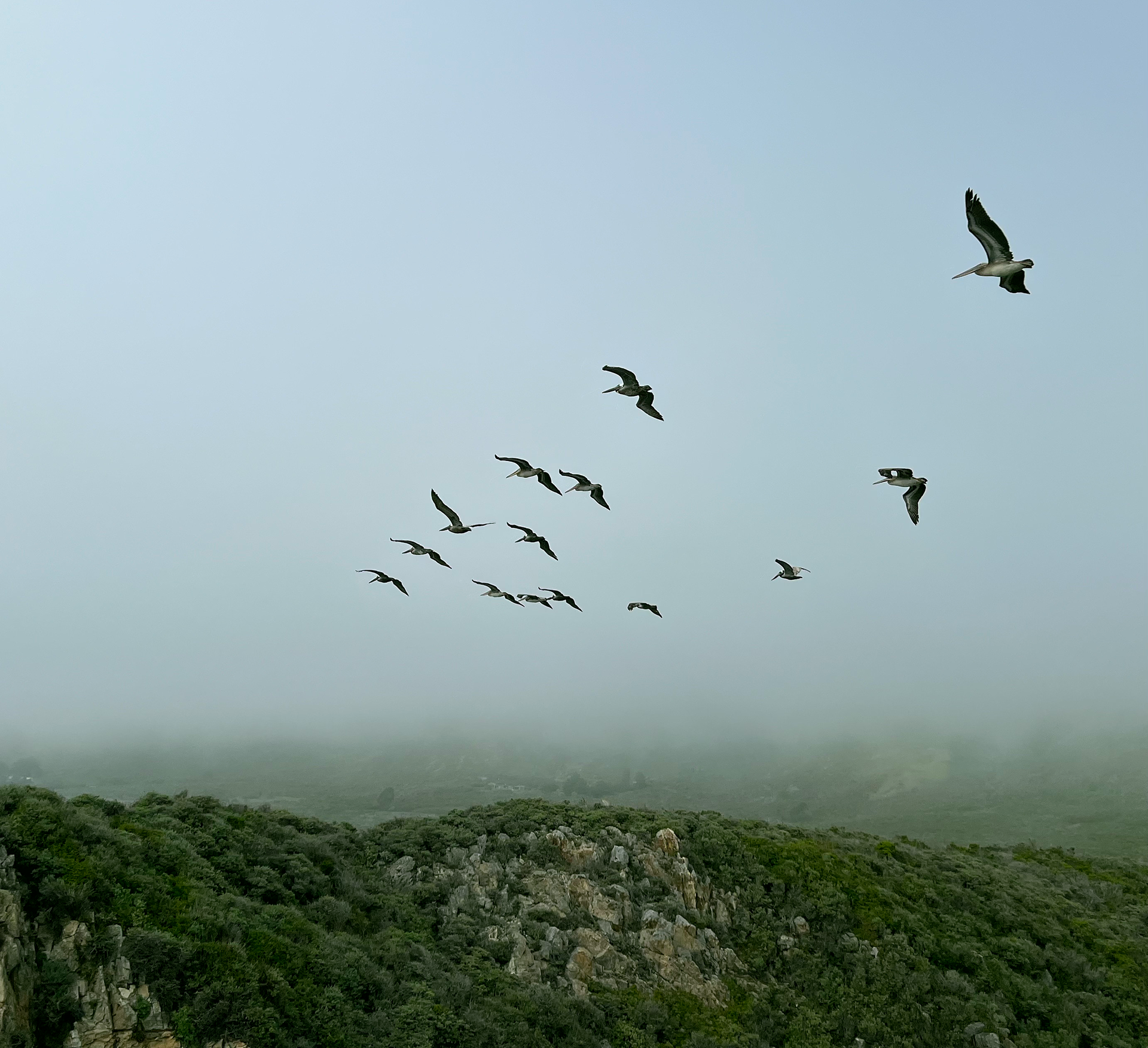 I captured this photograph while camping in Big Sur and was drawn to the natural division of the scene into thirds: the mountains, the flock in motion, and the lone straggler trailing behind. The birds remain crisp against the smooth sky, while the textured rock face grounds the composition through contrast. The viewer’s eye follows the movement of the flock as they sweep across the frame, creating a subtle sense of narrative. Light fog softens the background and adds depth, and adjusting the red curve to bring out more green helped define the ridge line for a richer, more dimensional final image.