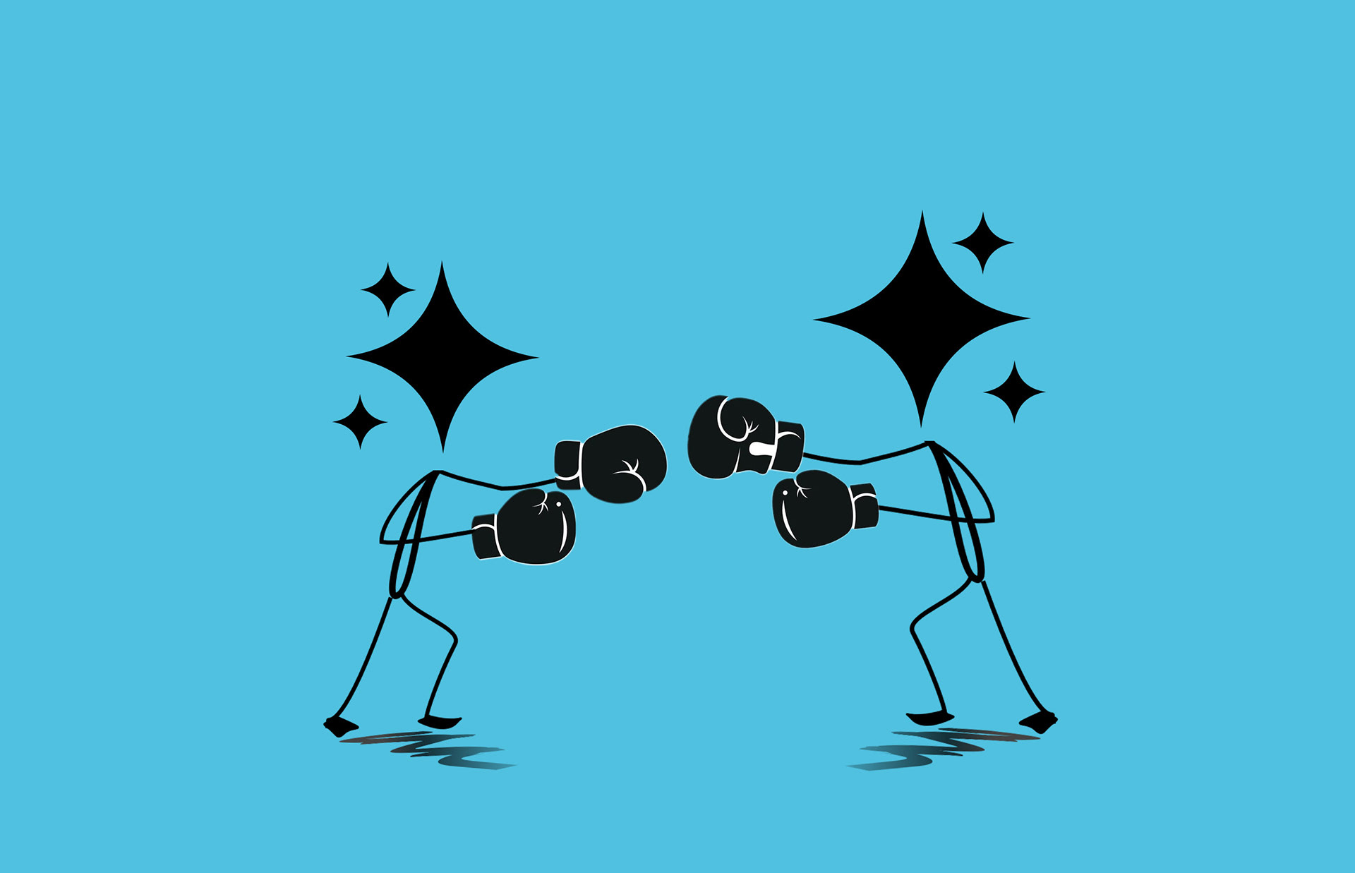 For this Photoshop illustration project, I chose the NPR headline “Fighting AI With AI” and created a visual concept that personifies the conflict between deepfake tools and the detectors designed to stop them. I built two stick-figure opponents by duplicating, flipping, and resizing shapes, then added boxing gloves that I cropped, cleaned up with masking, converted to smart objects, and resized to fit each figure. This gave the scene a clear sense of confrontation while keeping the illustration simple and readable.